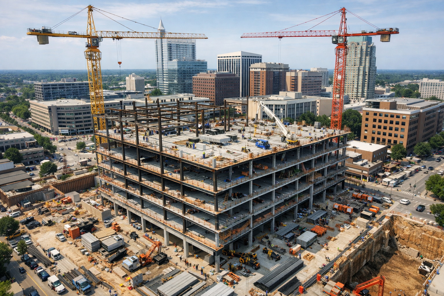 Reduce risk and eliminate the need for scaffolding, boom lifts, and manual inspections at height across your commercial properties and infrastructure. Our commercial drone inspection services include comprehensive visual and radiometric thermal assessments for rooftops, building facades, cell towers, construction sites, agricultural structures, and real estate properties across Raleigh and North Carolina. Insurance professionals rely on our detailed aerial documentation for property claims and risk assessments throughout the Triangle. Construction managers use our inspection reports to identify safety issues and track project quality across NC job sites. Agricultural clients benefit from aerial crop scouting and infrastructure condition assessments on their North Carolina properties. Every inspection delivers annotated high-resolution imagery, calibrated thermal diagnostics, and prioritized maintenance recommendations that help your business protect assets and maintain compliance.